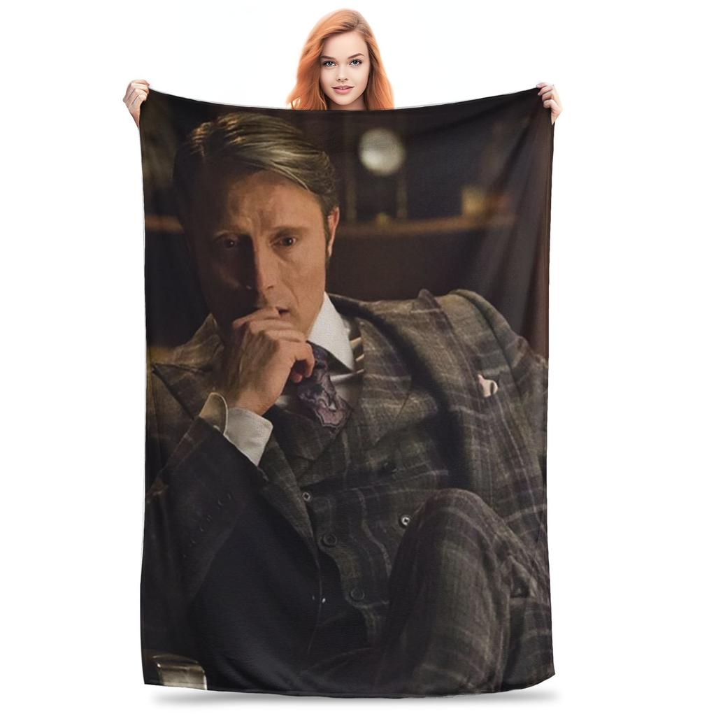 Mads Mikkelsen Hannibal Lecter (Hannibal TV) Blankets Portable Flannel Sofa Throw Blanket Couch Outdoor Throws Bedspread Quilt