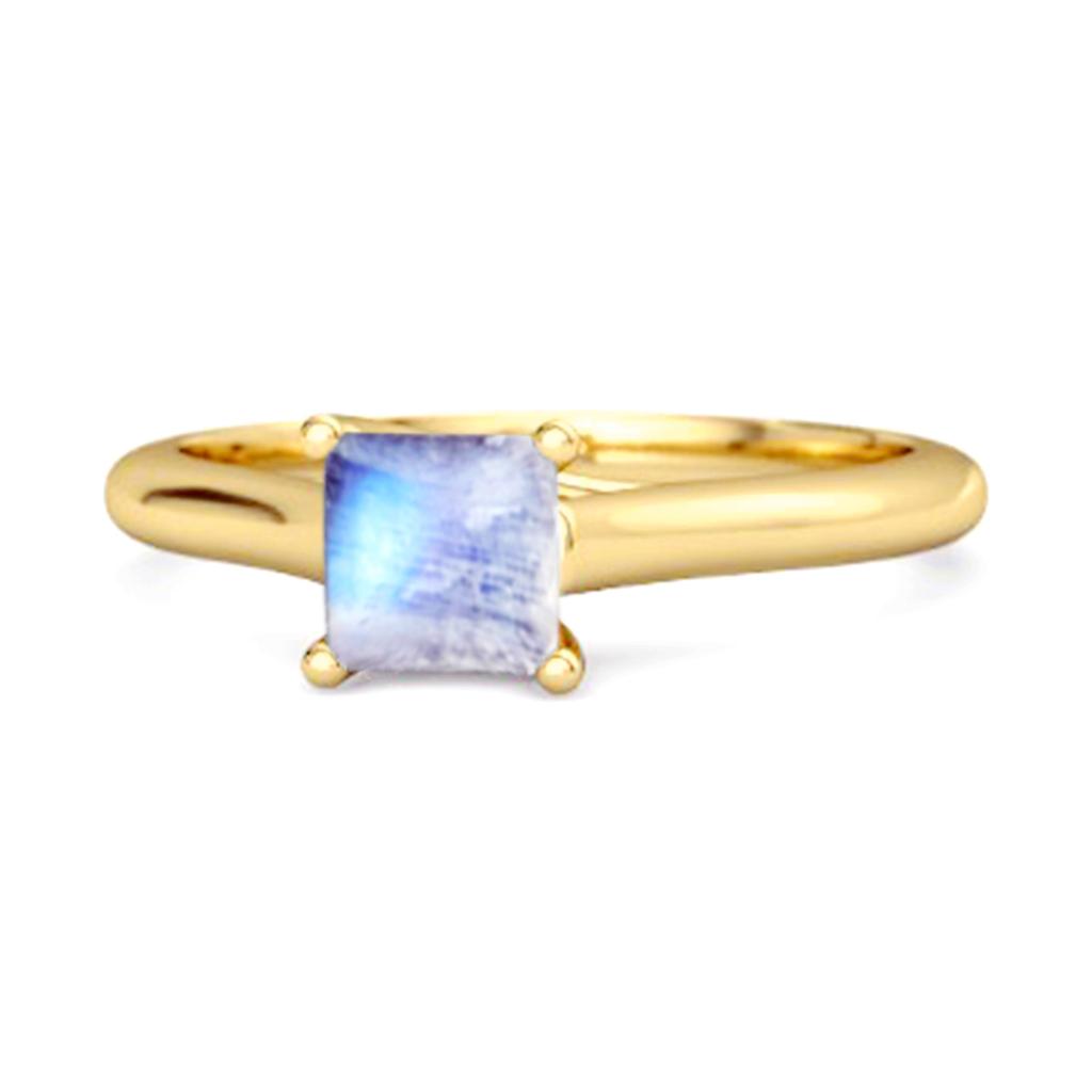 Solitaire Square Cut Moonstone 925 Sterling Silver Gold Vermeil Promise Ring