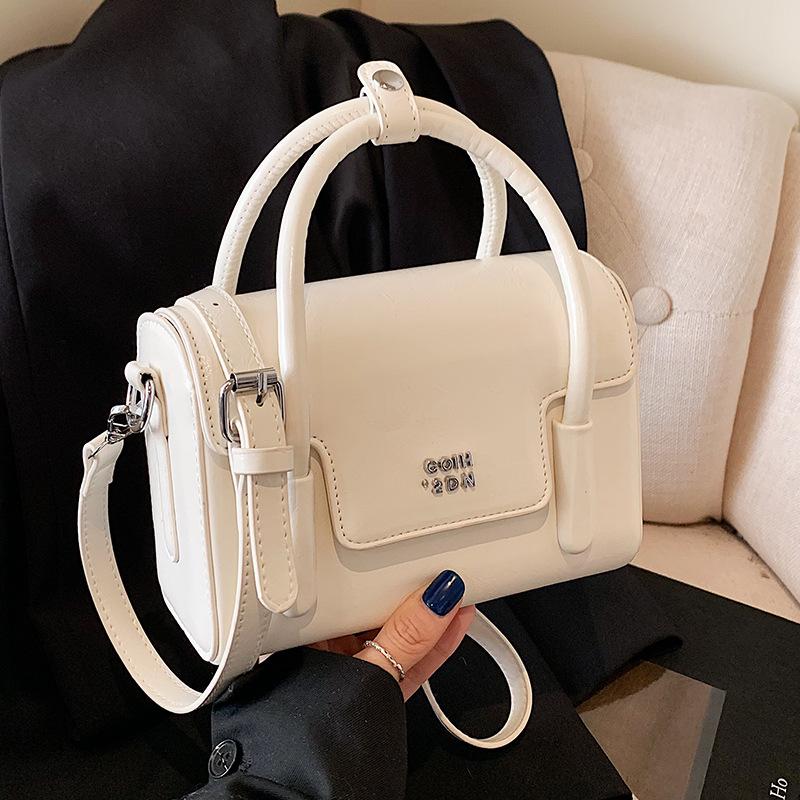 Niche Retro Portable Small Square Bag, Simple Oil Wax Leather, High-end Sense, Solid Color Single Shoulder Messenger Women's Bag