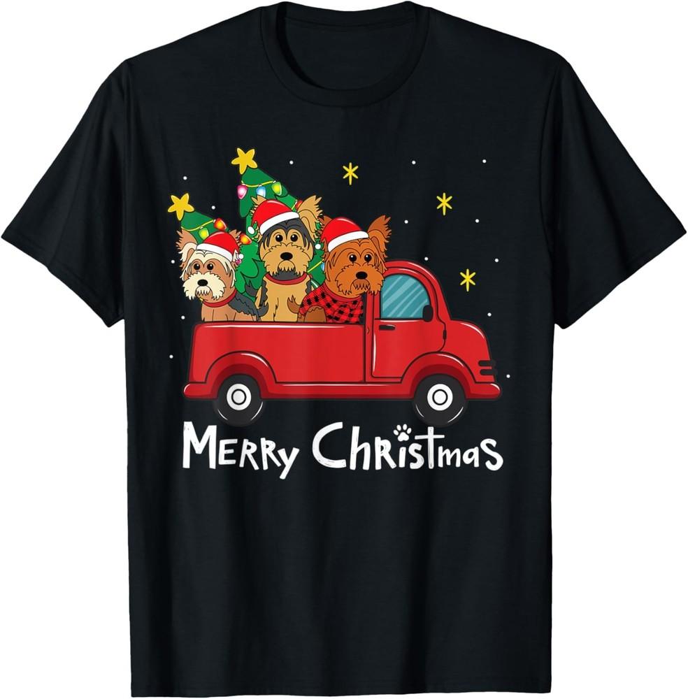 Yorkshire Yorkie Christmas Truck Tree Mom Dad Xmas Dog T-Shirt