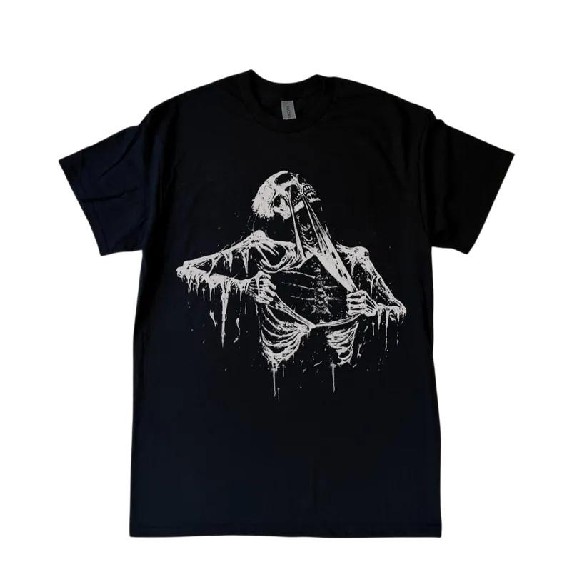 Retro Skeleton Graphic T-shirt, Vintage Washed Shirt, Retro Distressed Shirt