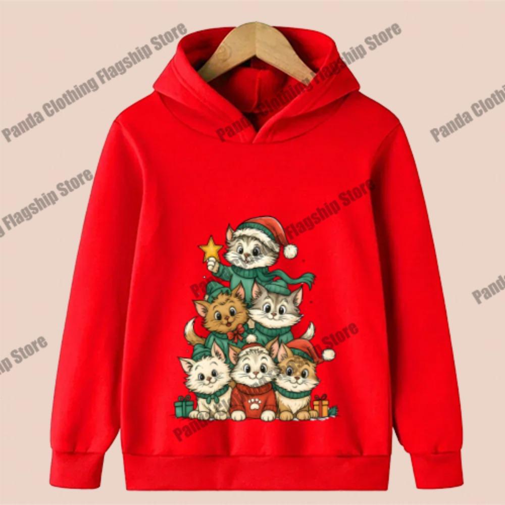 Christmas Children's Sports Hoodie with Christmas Cat Print, Simple Casual Sweatshirt for Boys and Girls, a Holiday Gift.