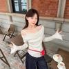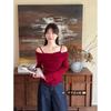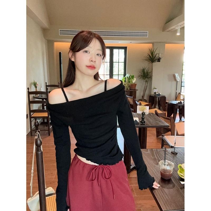 Fake Two-piece Off-shoulder Spliced Long-sleeved T-shirt for Women In Autumn New Slim-fitting Ear-hem Bottoming Top