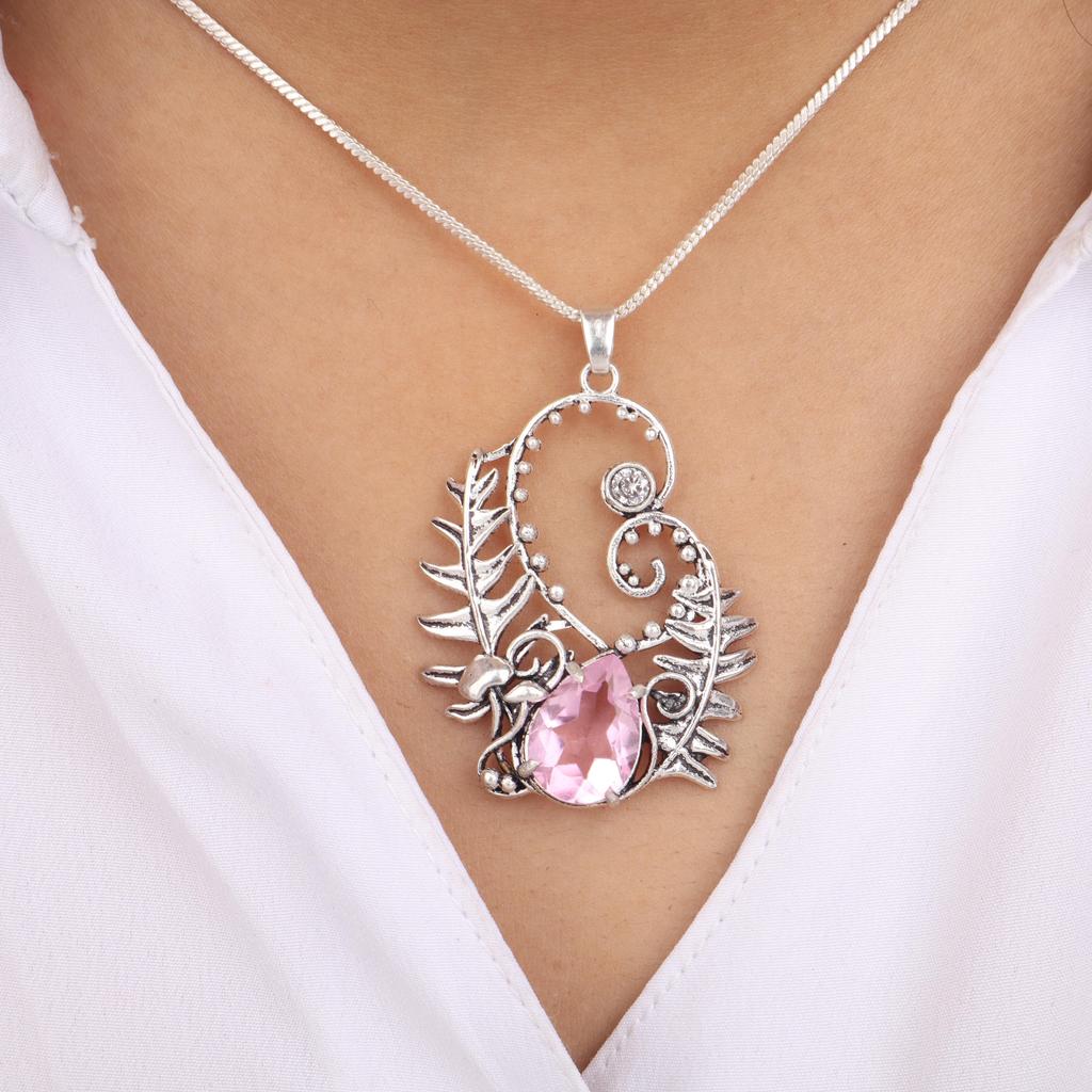 Natural Morganite Gemstone 925 Sterling Silver Women Jewelry Good-Luck Pendant 1.8" Gift For Wife CP-42-12