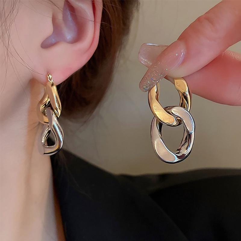 Foxanry Bicolor Earrings For Women Minimalist Vintage Elegant Party Jewelry Accessories Gifts