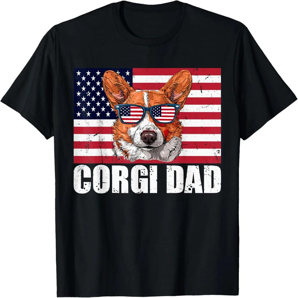 Corgi Dad Pembroke Welsh Corgi US Flag Dog Lover 4th of July T-Shirt