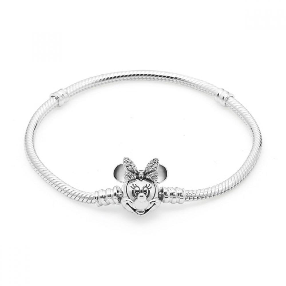Pandora 597770CZ Moments Disney Minnie Mouse Shimmering Clasp Snake Chain Silver Bracelet