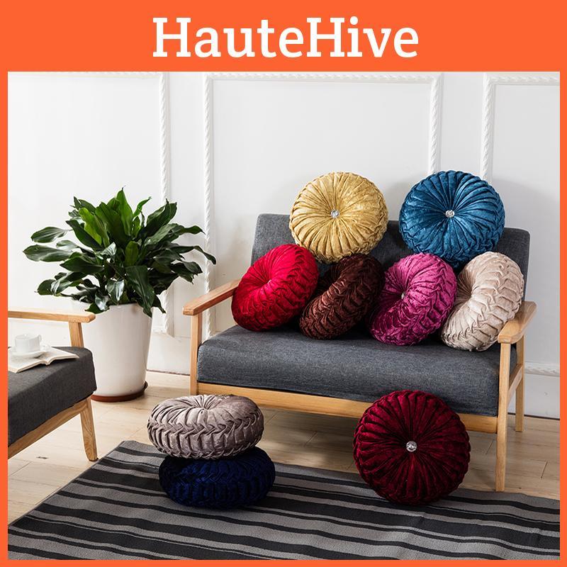 Luxurious Round Velvet Pumpkin Cushion With Charming Pleated Design And Soft Touch