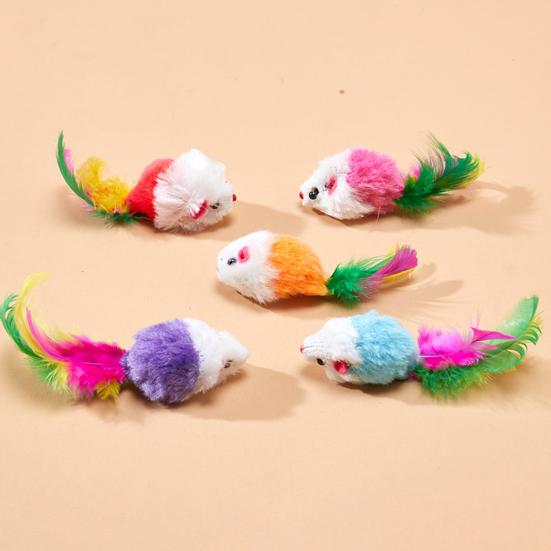 3/5/12Pcs Cat Mouse Toys Faux Fur Cat Mice Toy with Feather Tail Interactive Mini Furry Mouse with Rattle Sounds for Indoor Cat
