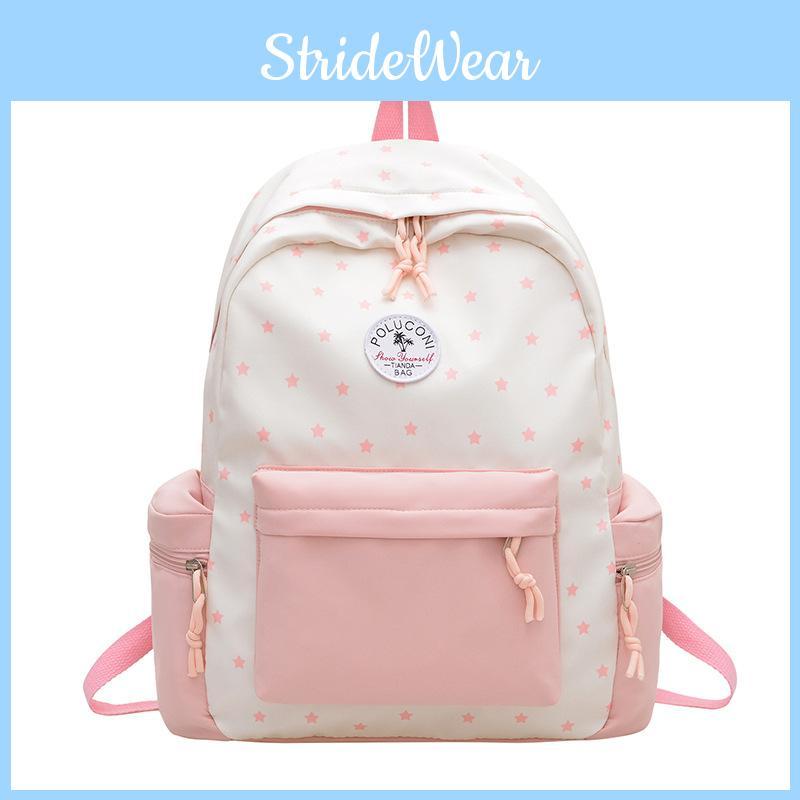 High School Student Girls Backpack With Color Blocked Star Pattern For School Use
