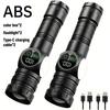 LED Flashlight 5 Lighting Modes COB Red Side Light with Magnet USB Rechargeable Torch Light Built In Battery for Hiking