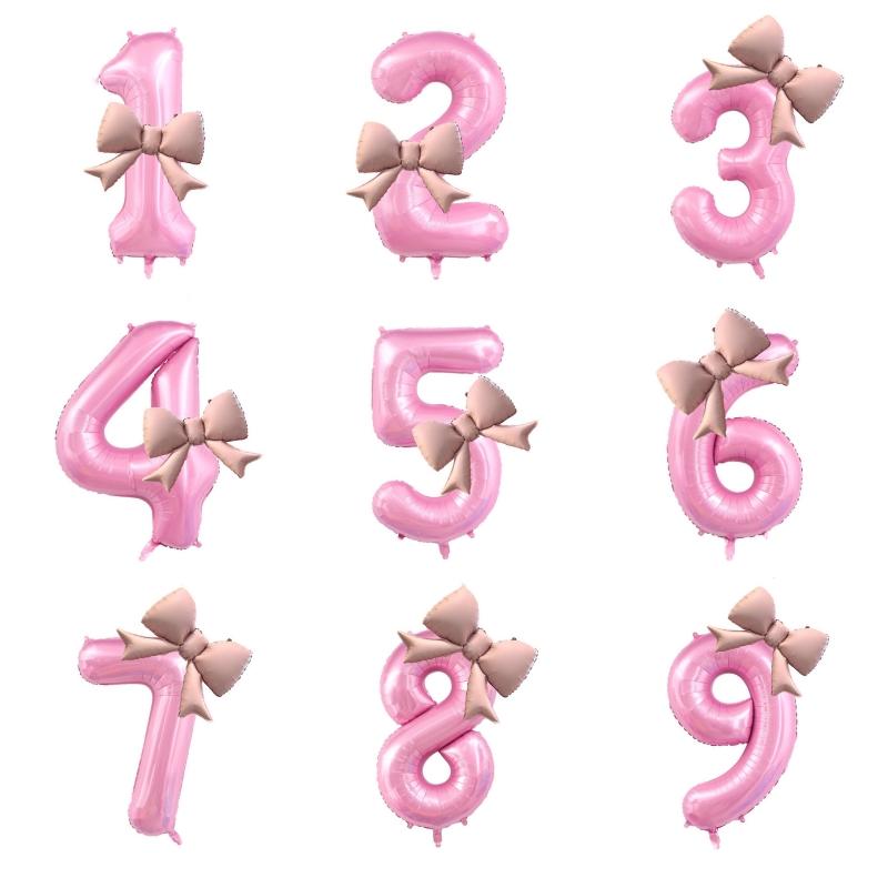 40 Inch Birthday Number Ballons Girls Princess Birthday Pink Bownot Balloons Wedding Party Ballons Jumbo Number Balloon