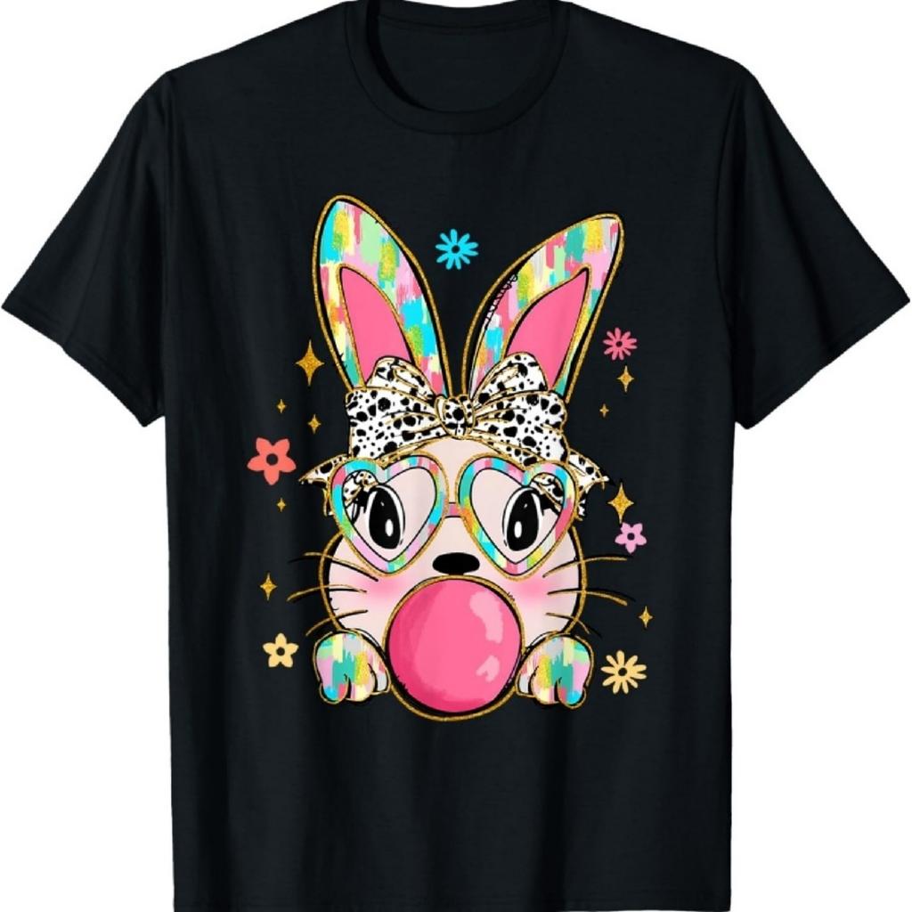 Rabbit Bunny Blowing Bubble Gum Easter Day Coquette Bow T-Shirt