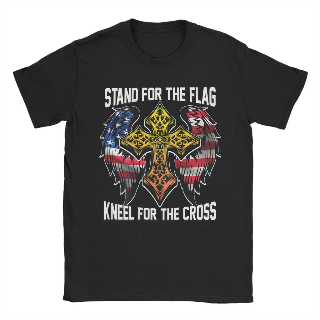 Stand For The Flag Kneel For The Cross Men's T Shirts Veteran's Day Novelty Tees Short Sleeve T-Shirt Cotton Gift Merchandise