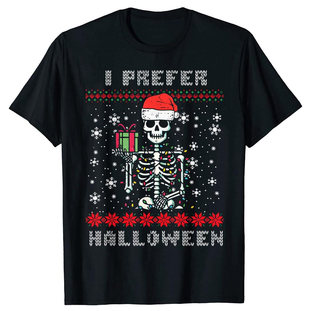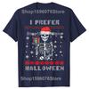 Christmas Skeleton I Prefer Halloween Ugly Xmas 100% Cotton T-shirt Men Fashion Casual Tshirt Loose Oversized Streetwear T Shirt