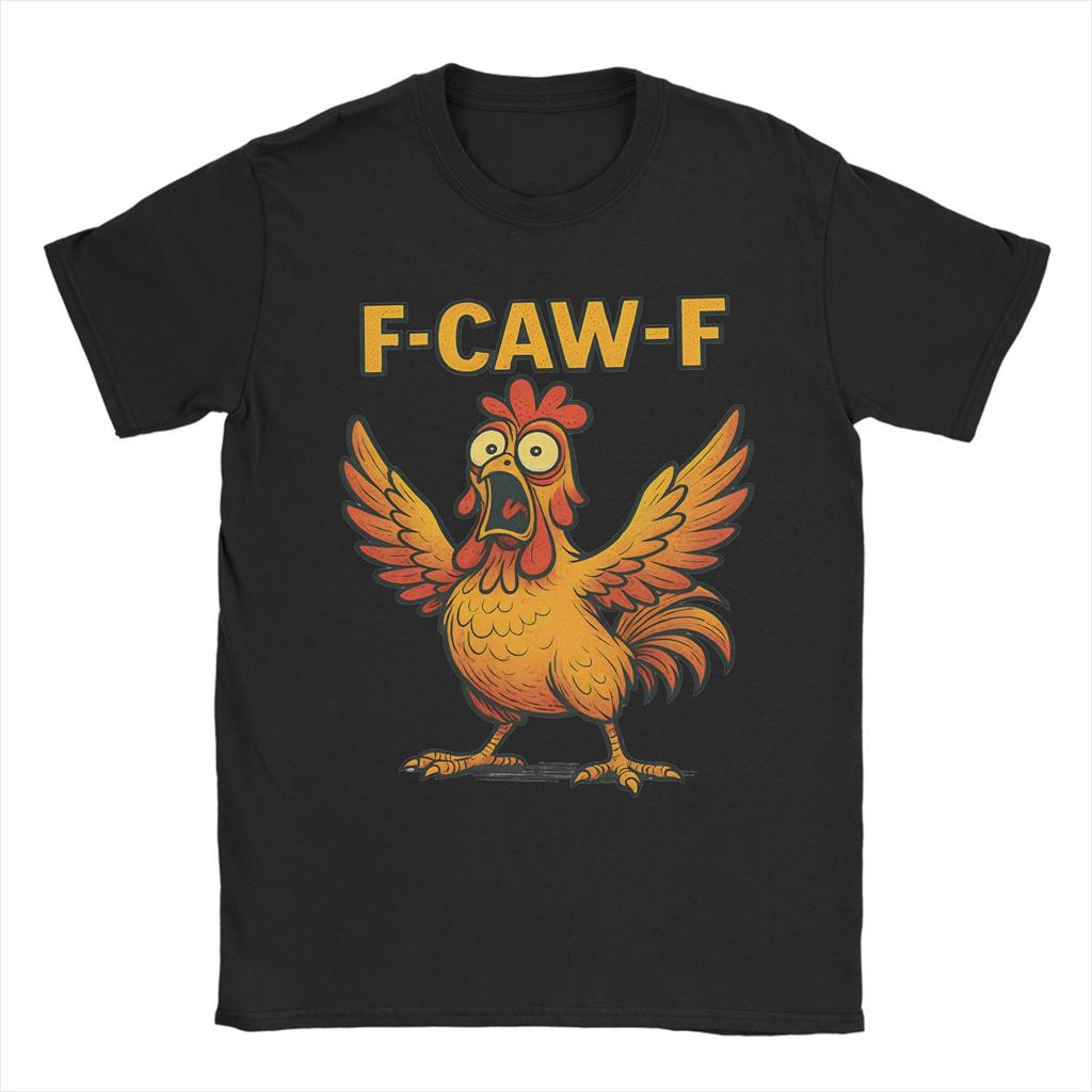 Men's T-Shirts Funny F-Caw-F Chicken Screaming Rooster Meme Humor 100% Cotton Tee Shirt Short Sleeve T Shirt O Neck Tops Unique