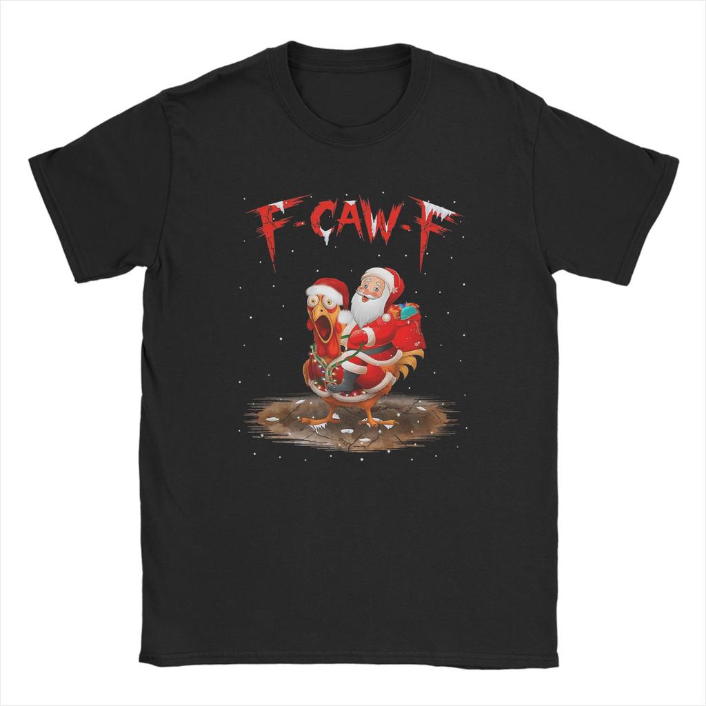 Men's T-Shirt Funny F-Caw-F Santa Riding Chicken Christmas Fcawf Funny Cotton Tee Shirt Short Sleeve T Shirts Clothes Summer