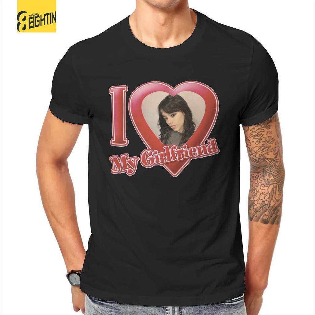 I Love My Girlfriend Jenna Ortega T Shirt for Men Pure Cotton Vintage T-Shirt Round Collar Tees Short Sleeve Tops 4XL 5XL