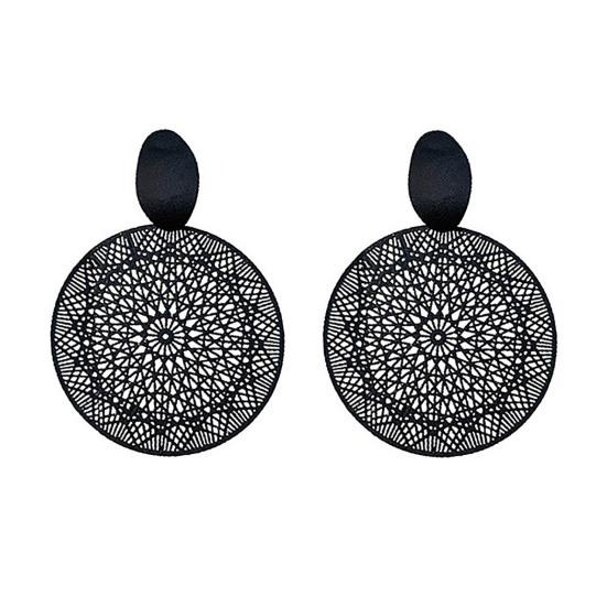 1 Pair Exaggerated Piercing Women Earrings Alloy Round Hollow-out Pattern Pendant Earrings Party Jewelry
