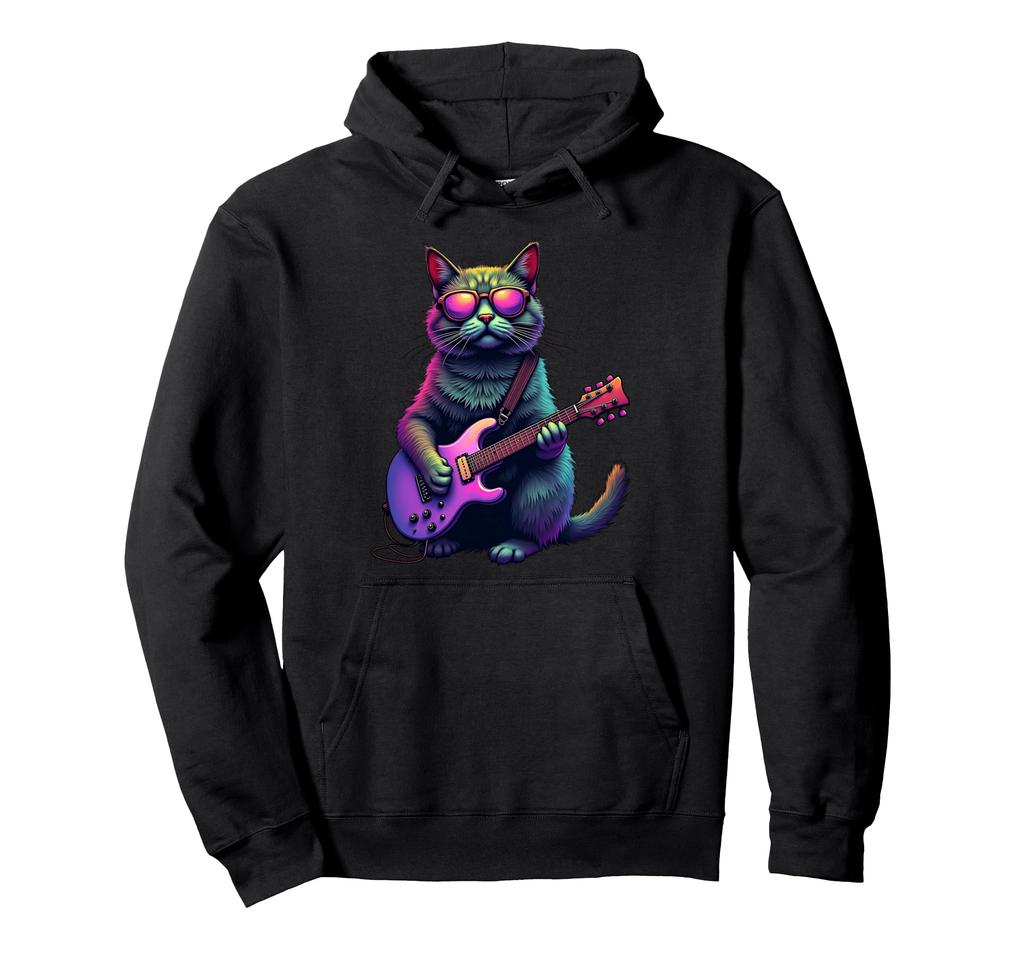 Rock Cat with Guitar and Sunglasses Cat Music Cat Electric Guitar Rock Cats Hoodie