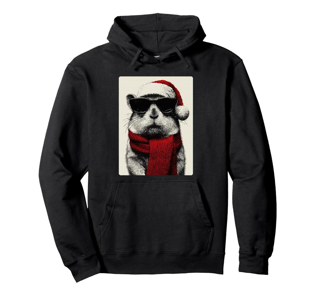 Christmas Hamster with Sunglasses and Santa Hat, Funny Animal Hoodie