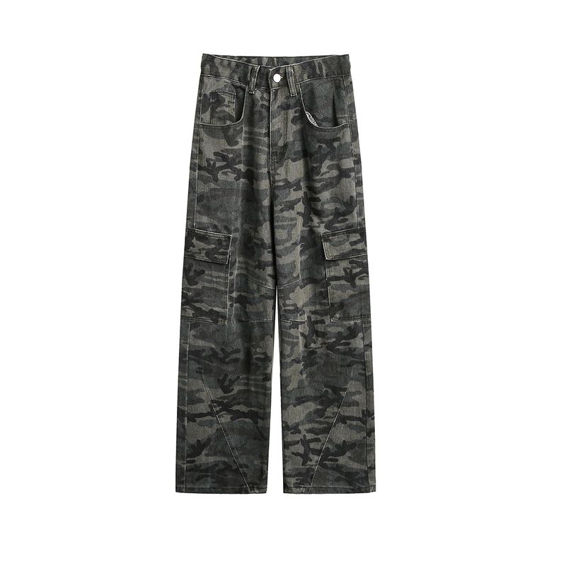Men's Retro Washed Distressed Camouflage Overalls Men's and Women's Loose Wide-Leg American Casual Straight Multi-pockets Trousers