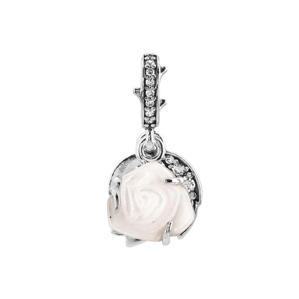 PAndora 793200c01 White Rose In Bloom Double Pendant And Dangle Silver Charm