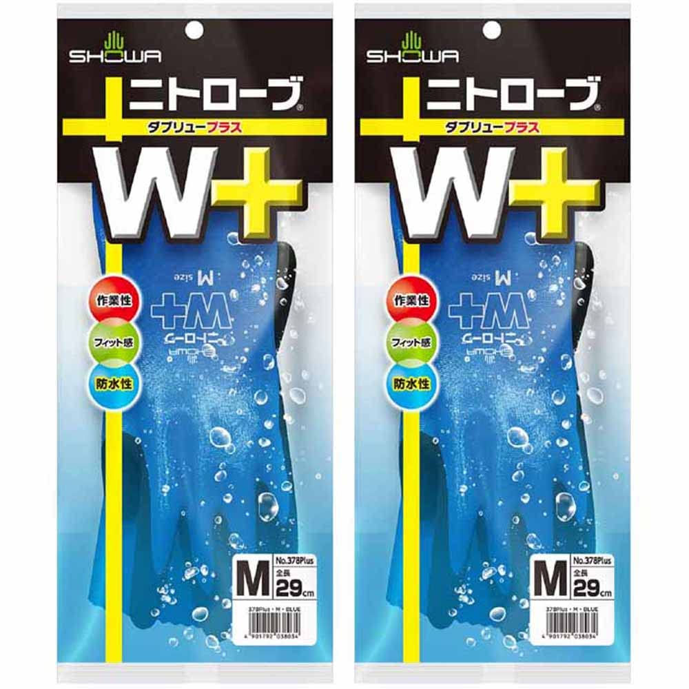 Showaglove 378 Plus Nitrobe Waterproof and Work Size 1 Pair of No. W+ Oil-Resistant Gloves, M, Blue, (Set 2)