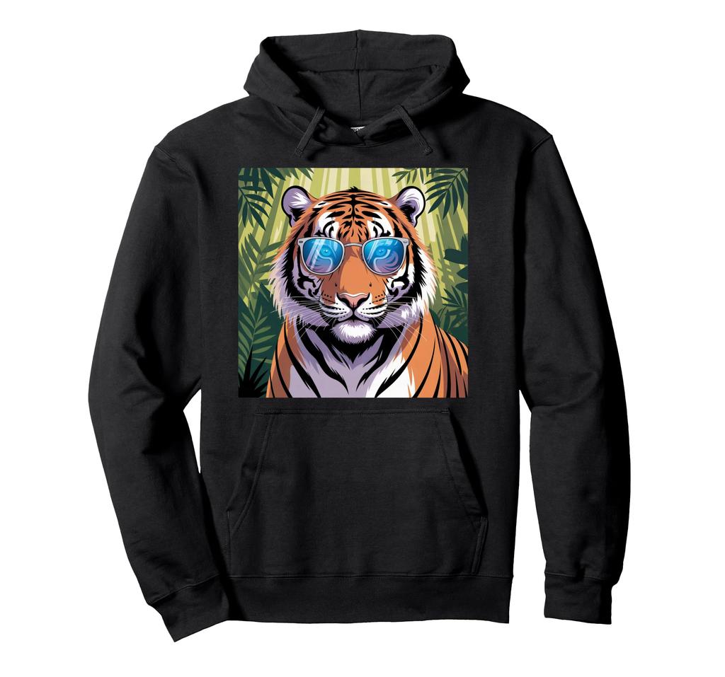 Tiger Print Hoodie with Tiger Sunglasses and Blue Tiger Costume for Adults