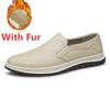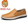 Autumn Winter Mens Loafers Comfy Leather Casual Shoes Handmade Moccasins Male Comfortable Driving Shoes Sneakers Warm Plush Fur