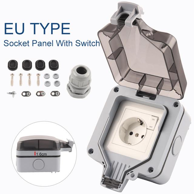 IP66 EU Standard Germany Waterproof Outdoor Wall Socket With Switch Power Socket For Home GardenOutlet Grounded 16A 250V