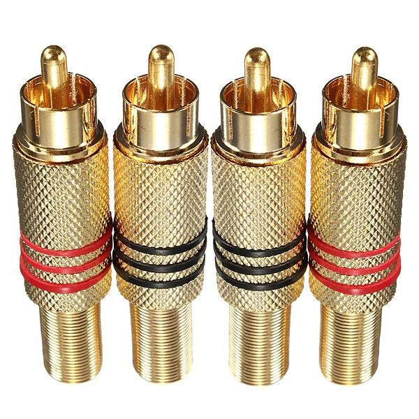 4Pcs 2Pair Gold RCA Phono Male Plug Solder Audio Video Cable Adapter Connector NEW Great for Audio Speakers