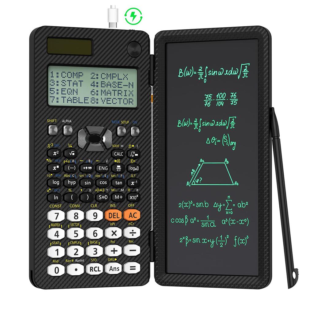 Rechargeable ROATEE 991ES Scientific Calculators, CalcNote Multiview 4-Line Display with LCD Writing Tablet, Foldable Portable with Notepad for Business High School College Students and Teacher(Black)About this item: