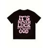Black T Shirt With Pink Its Never Luck Its Always God Print For Casual Wear And Street Style