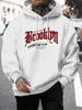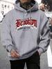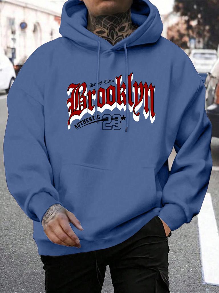 Brooklyn 23 Letter Print Men'S Pullover Fashion Warm Hoodie Casual Pocket Man Hooded Autumn Big Size Streetwear