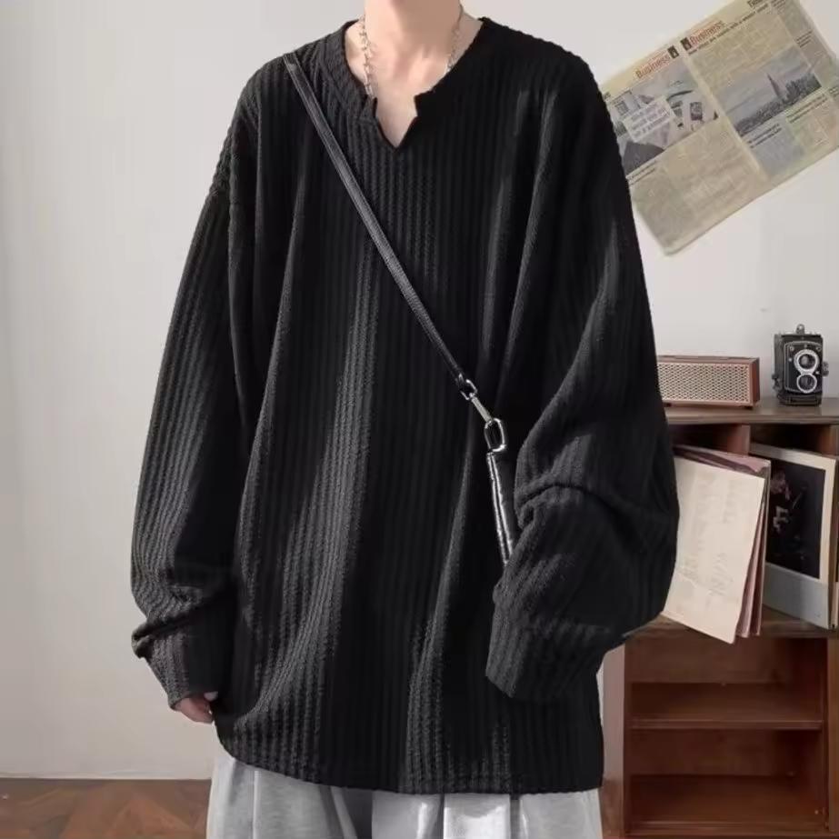 Spring Autumn Streetwear T-shirt for Men Hip Hop Baggy Tops Casual Solid Color Male Loose Long Sleeve Tees
