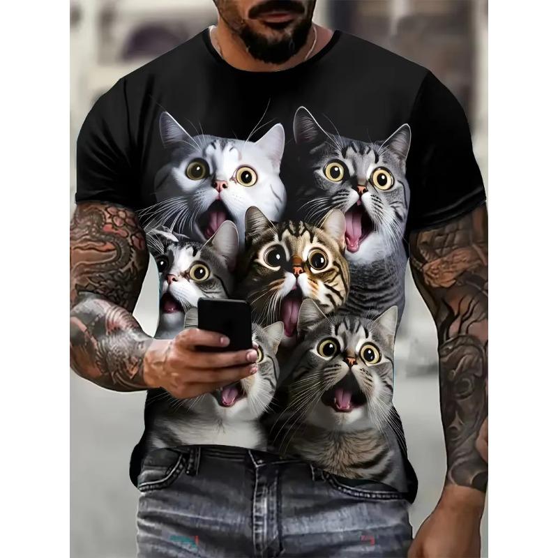Summer 3D Men's Tshirt Breathable Outdoor Tshirt Short Sleeve Cartoon Cat Printed T Shirt Men Women T-Shirt Kid TShirt