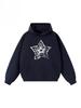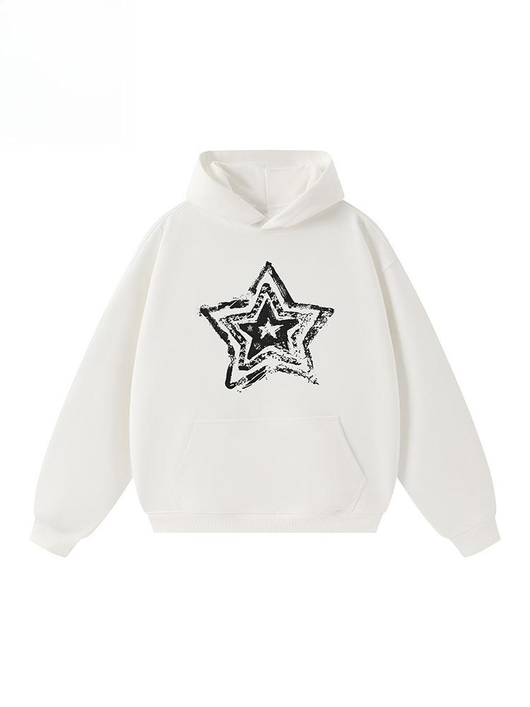 2025 Autumn New American Five-pointed Star Graffiti Printing Warm Loose Hooded Long-sleeved Shirt Men's and Women's Loose Top