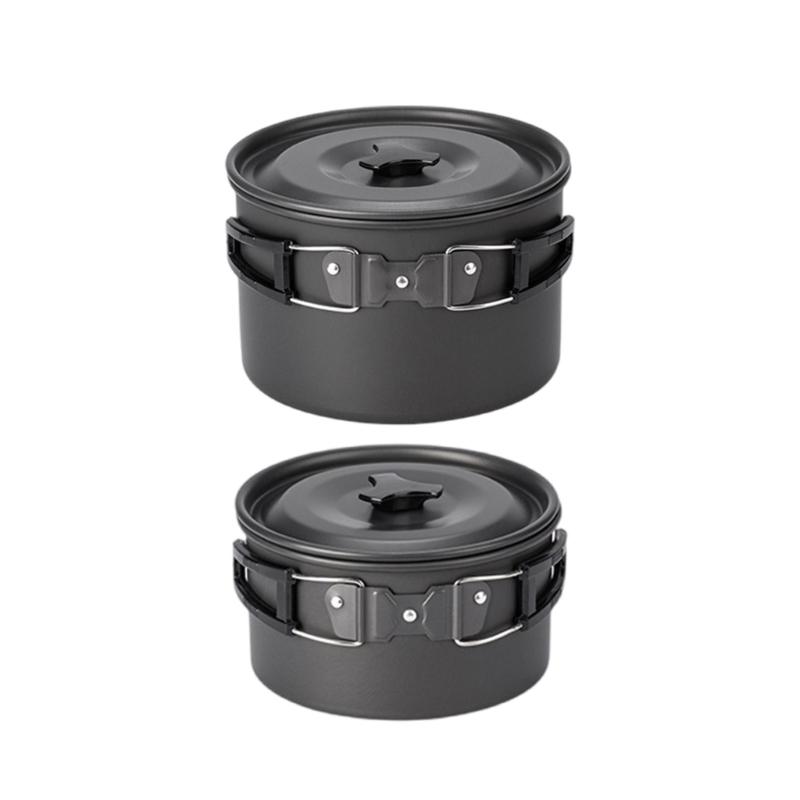 Outdoor Camping Cookware with Lid and Folding Handle Portable Camping Cook Pots Aluminum Alloy Camping Cookware