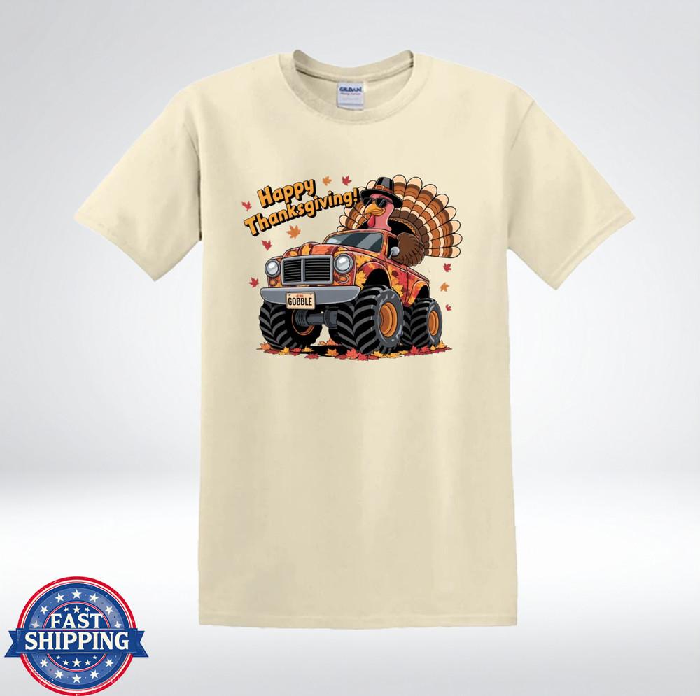Funny Turkey Truck Happy Thanksgiving Cartoon Fall Design T-Shirt