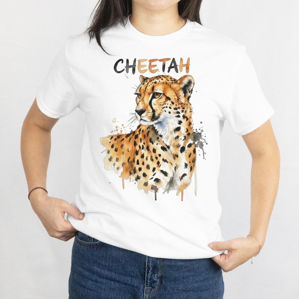 Cheetah Watercolor Portrait Wildlife Animal Tee Cheetah Color Writing Unisex Tee