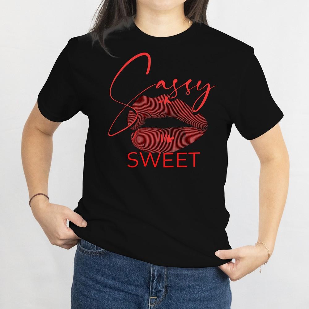 Sassy Lips Tee, Sassy Sweet Womens Graphic T-Shirt, Funny Lips Print T-shirt