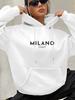 Milano Italy Polyester Hoodie for Women Alphabet Print Casual Long Sleeve Sweatshirt with Pocket Fashionable Hooded Sweatshirt