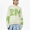Women Winter Oversize Letter Sweater Women Crewneck Casual Knitted Loose Pullovers with Letter Green Sweater