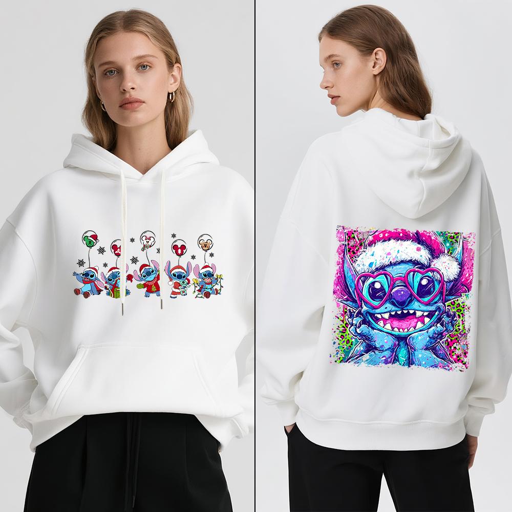 Disney Stitch Christmas Print Women Fleece Hoodie Winter Warm Pullover Casual Holiday Travel Party Outfit Soft Cozy Sweatshirt