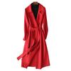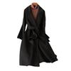 Womens Long Wool Peacoat Notched Lapel Open Front Trench Coat Slim Fit Fall Winter Warm Overcoat with Belt