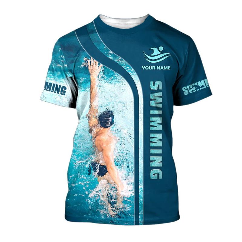Custom Name Swimming Graphic Tee Shirt For Men 3D Print Short Sleeve Crew Neck Tshirts Clothes Gift For Swimming Lovers