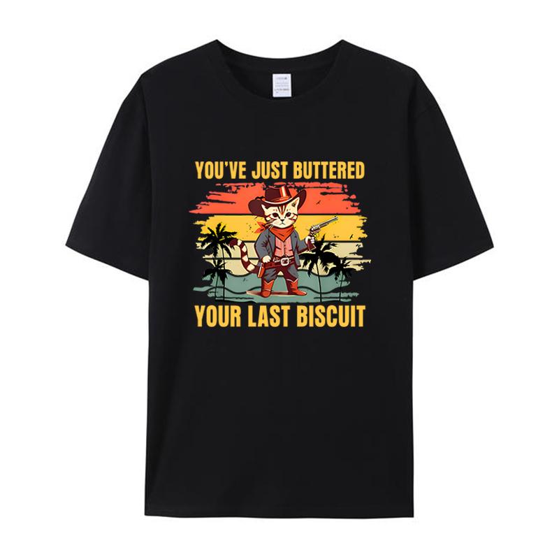 You've Just Buttered Your Last Biscuit Western Cat Cowboy Men's Clothing Shirts Women's Graphic T-Shirt Funny Tee Tops