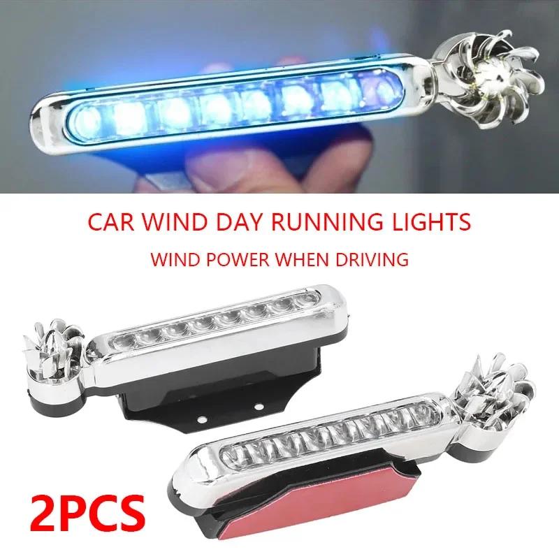 Wind Powered Car LED DayTime Running Lights Auto Auxiliary Lighting Rotation Fan Lamp Automobile Day Time Headlight Lights