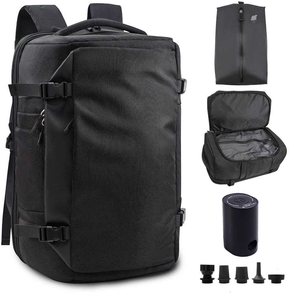 [Combined Use with Backpack, Vacuum Bag, and Electric Pump] This product comes with a vacuum pack and an electric pump. For everyday commutes or short trips lasting 1-3 nights, the 40L backpack can be used alone. For trips lasting 5-7 days, combining the backpack and vacuum pack increases the storage capacity by 20L to 60L. The electric pump completes compression in 10 seconds, and the thorough exhaust provides incredible compression power. It's perfect for storing bulky clothing when traveling or on business trips.